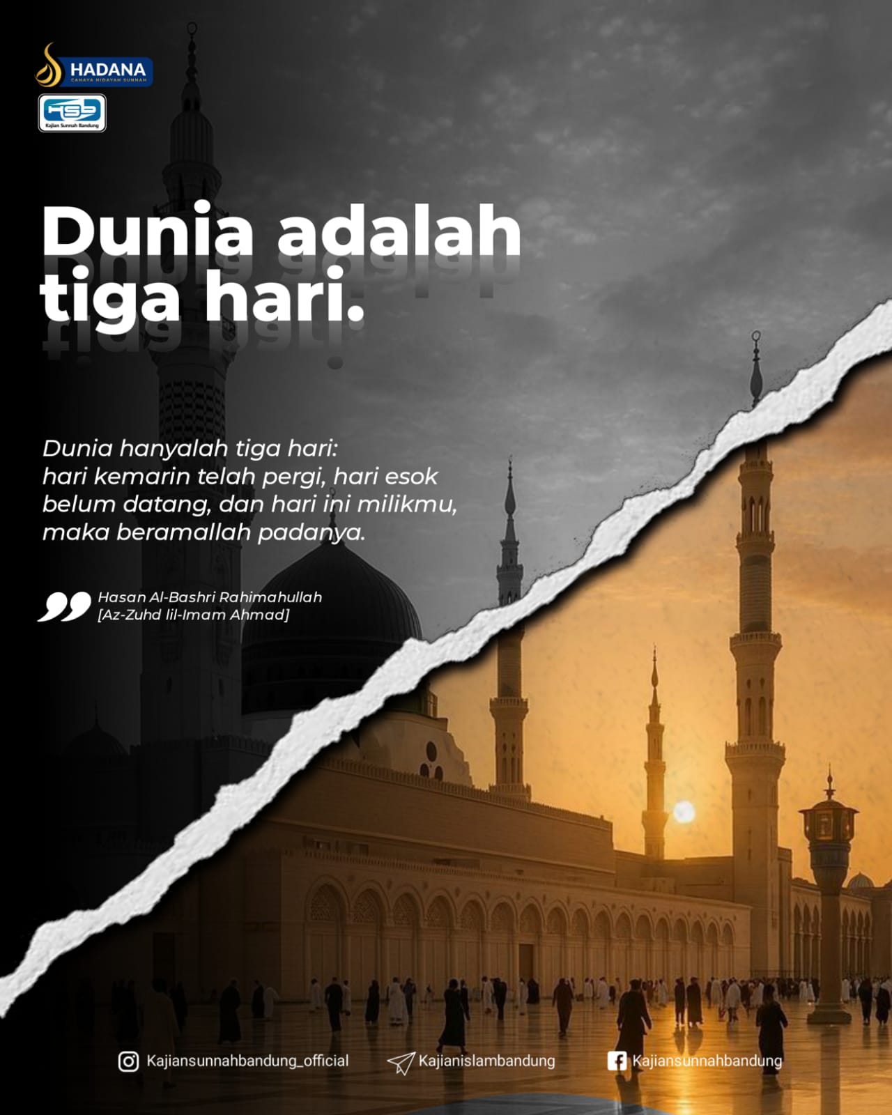 “Dunia hanyalah tiga hari: hari kemarin telah pergi, hari esok belum datang, dan hari ini milikmu, maka beramallah padanya.” [Az-Zuhd lil-Imam Ahmad]